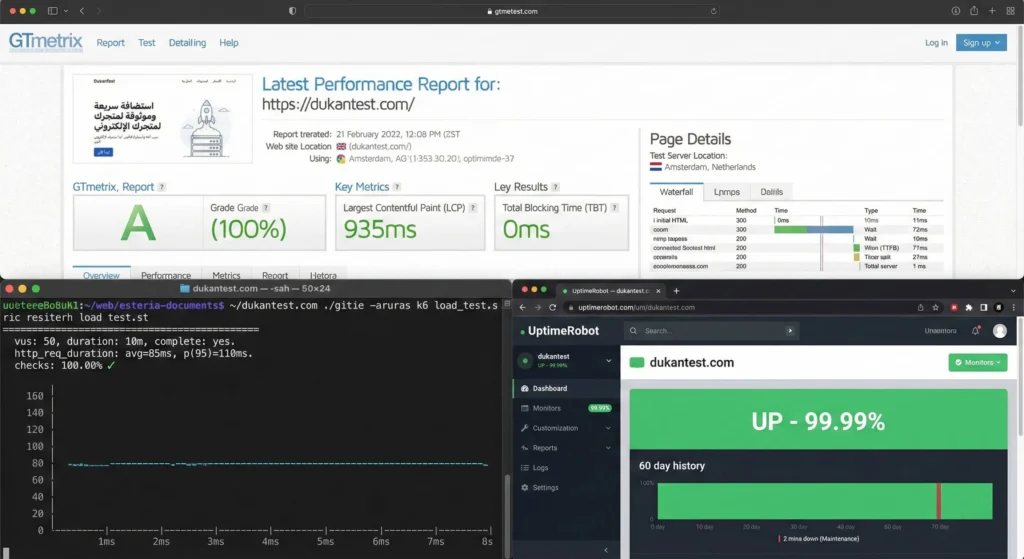 - النتيجة: ظل الموقع مستقراً تماماً ولم يرتفع زمن الاستجابة، مما يثبت أن هوستنجر قوية للمتاجر الإلكترونية وقت العروض.
